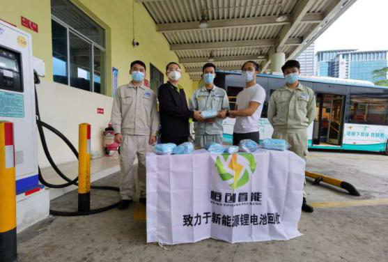 本次深圳巴士集團的退役動力電池回收工作正好碰上疫情期間,恒創睿能在做好回收工作的同時,也專門給現場作業的一線人員配備了口罩、手套等防疫物資,保障了員工的健康安全。