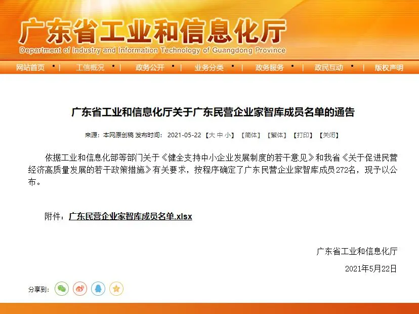近日,依據(jù)工業(yè)和信息化部等部門關(guān)于《健全支持中小企業(yè)發(fā)展制度的若干意見》和廣東省《關(guān)于促進(jìn)民營經(jīng)濟高質(zhì)量發(fā)展的若干政策措施》有關(guān)要求,廣東省工業(yè)和信息化廳確定了廣東民營企業(yè)家智庫成員272名。其中江門市恒創(chuàng)睿能環(huán)保科技有限公司董事長陳志鵬顯示榮譽入選。